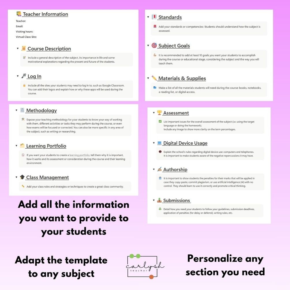 To organize all the information of your teaching subject for students (and parents) to know how it works, how it is assessed, and any other information required.